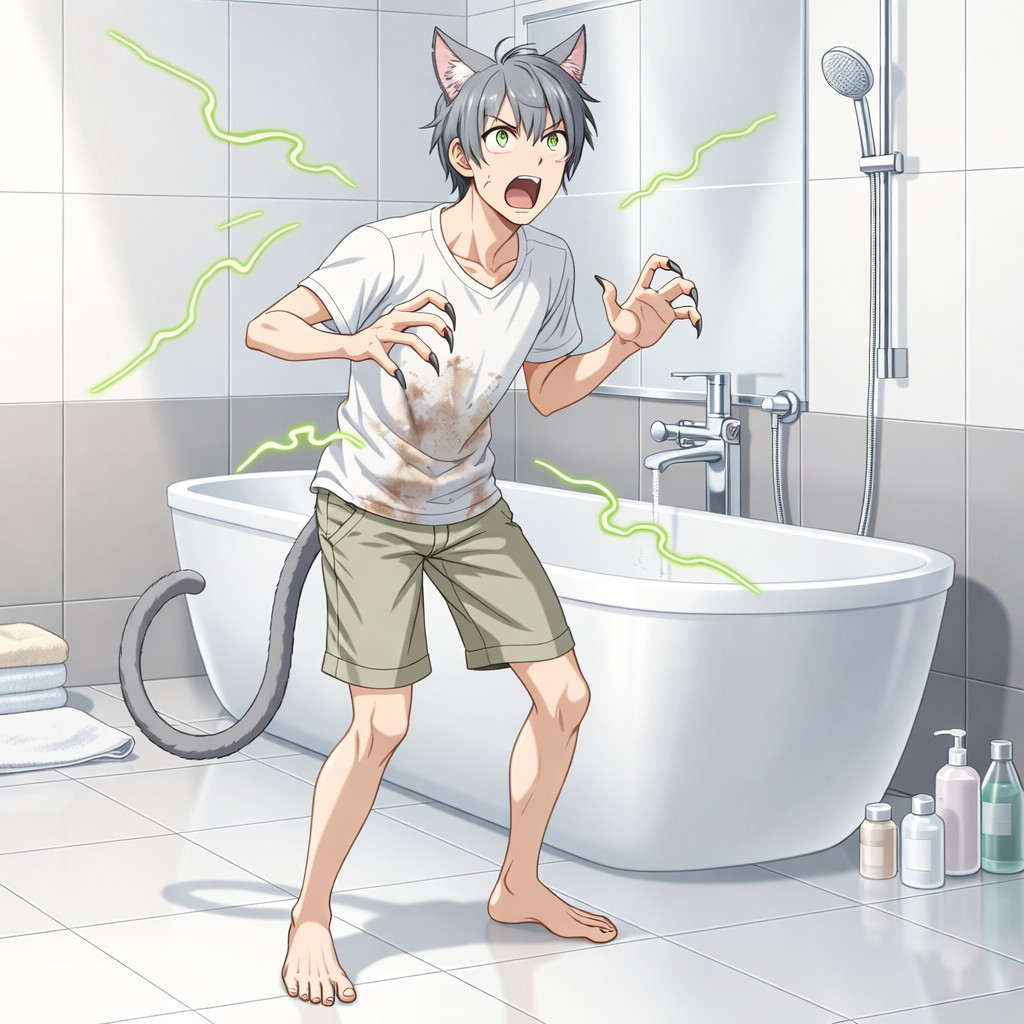 🙀🛁 | Dirty, stinky stray catboy needs a bath
