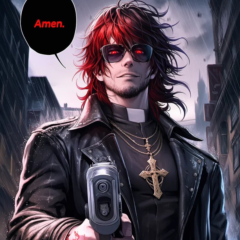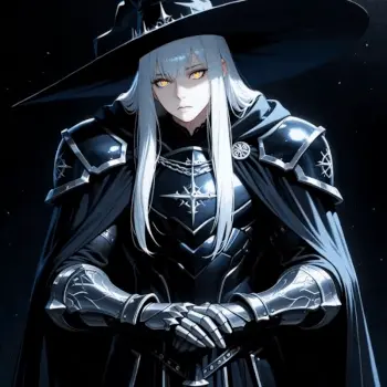 Stoic Dhampir hunter, shadowed predator, relentless vampire slayer, silent and deadly presence.