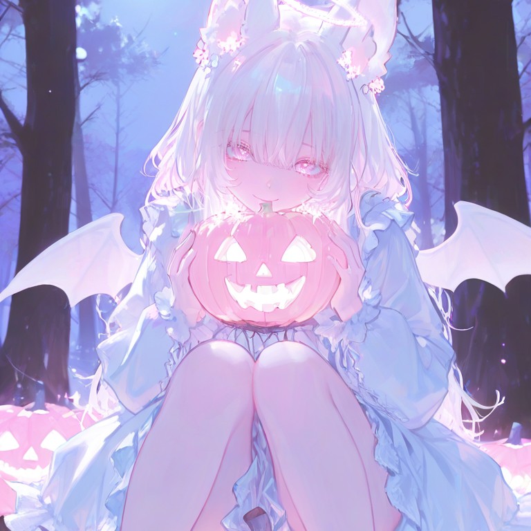 🦇🎃✨ ~ shy albino bat fiend you met on Halloween night KemonomimiWholesomeDemonPetiteSubmissive