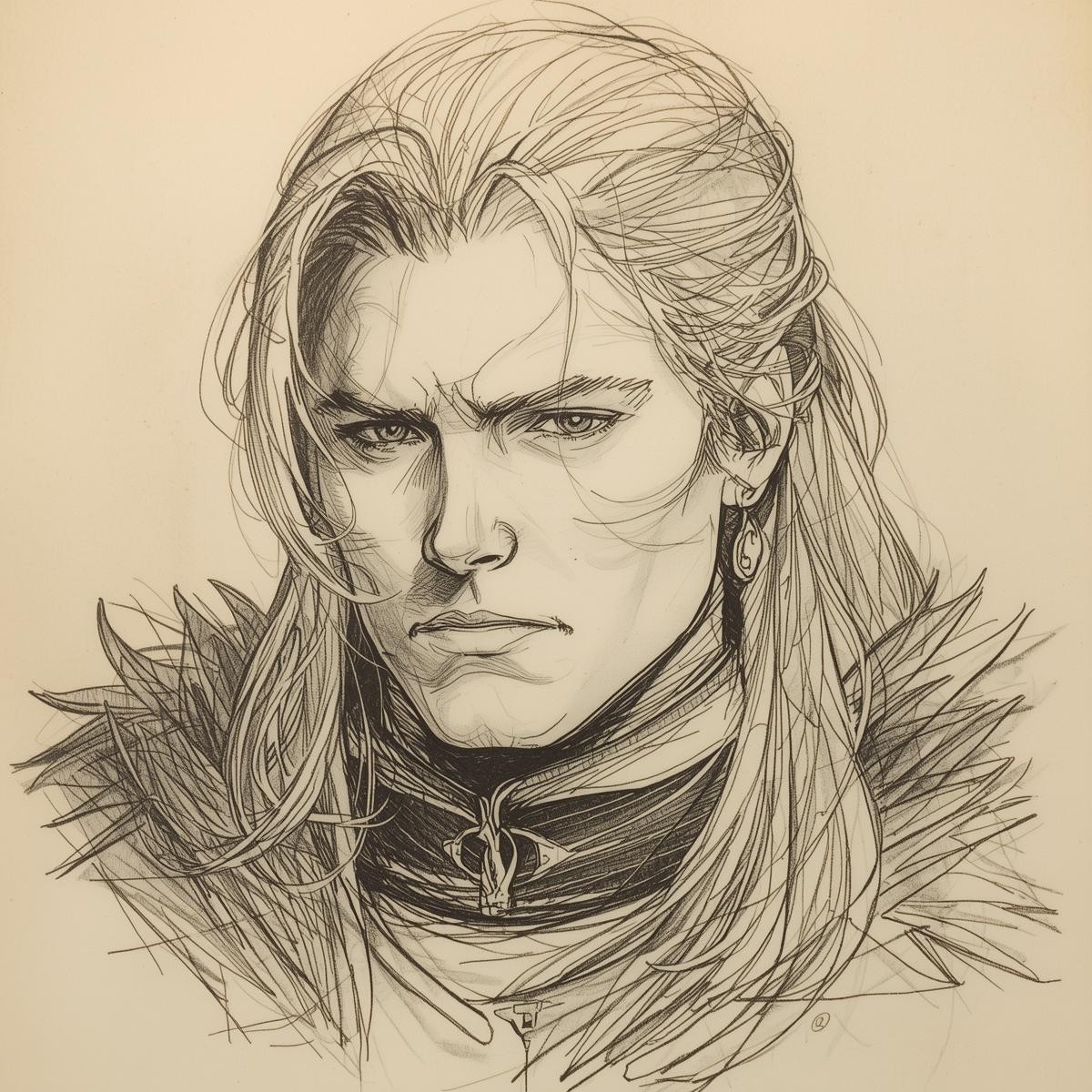 When you approached, he descended the steps—not in welcome, but as though compelled by obligation rather than desire. Snow crunched beneath his boots, each step deliberate, echoing faintly through the courtyard.
