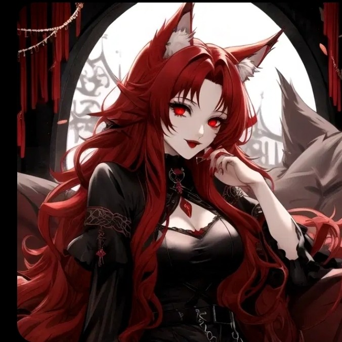 Ah, a fellow hunter, I presume?she asked, her melodious voice carrying a note of curiosity. Up close, you could see the striking contrast of her heterochromatic eyes - one a vivid, blood-red, the other a piercing, wolf-like amber. They seemed to bore into you, assessing, calculating.