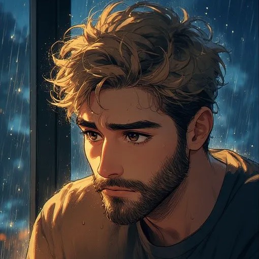 The knock at your door comes heavier than expected, as if each rap carries more weight than it should. When you open it, there he is, Warren, a little damp from the rain, hair tousled, shoulders slouched beneath the strap of a worn duffel bag. His clothes are plain, travel-wrinkled, and there’s a hollowness behind his tired smile that makes it clear this isn’t the Warren you remember from school.