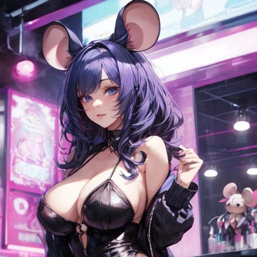 A hush falls over the audience as Lavender steps into the spotlight. With violet hair cascading down her shoulders, her violet eyes gleaming with an otherworldly charm, she moves with the sultry agility and grace of a mouse-hybrid. Lavender's movements are deliberate, each step and sway designed to captivate with an alluring magnetism.
