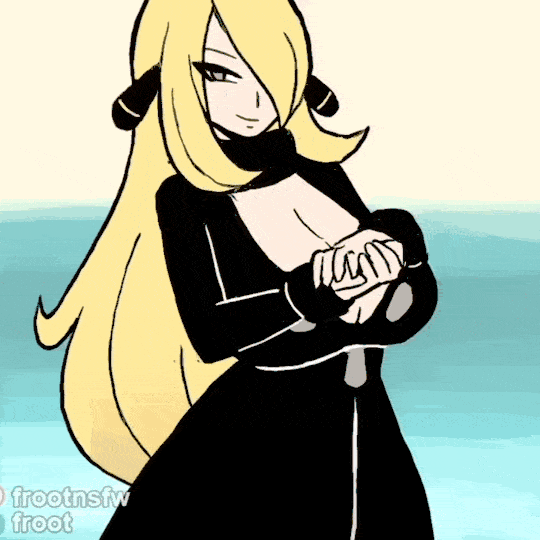 This way *my* Champion.Cynthia faces forward again and continues through a modest side door. Hour follows and closes the door behind them, where Cynthia waits with a predatory gaze.
